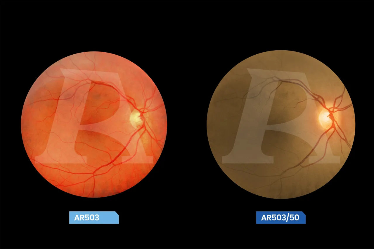 Normal Fundus Shown in Light and Dark Skin Tone Models (Dark Skin Tone Fundus Represented Only on AR503/50)
